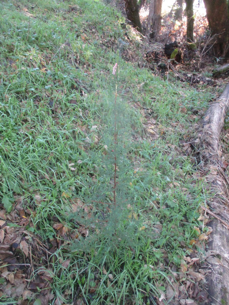 These three trees were installed in memory of three members of our Community who, at one time or another, had been unhoused. Actually, this Memorial Grove is coincidentally developing on a former camp site of Steven Michael Ralls. A fourth tree will be installed for another deceased and formerly unhoused member of our Community as more of the endemic vegetation is subordinated. This fourth tree and any subsequent trees may not necessarily be Monterey cypress, but will be evergreen and coniferous, since the Memorial Grove happens to be a component of a landscape that is designed to replace deciduous endemic vegetation with densely evergreen vegetation, and ultimately obscure the view of nearby industrial buildings.